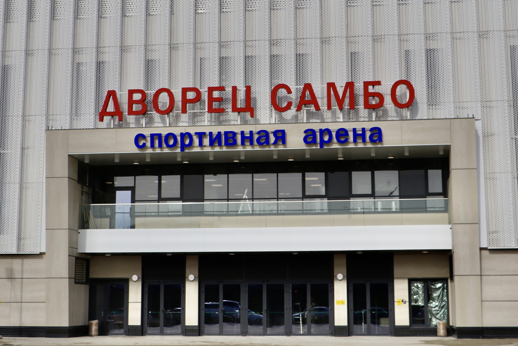 При строительстве Дворца Самбо в г. Краснодар компания ООО «ТЕХГРУПП» приняла участие в проектировании инженерных систем с применением IT‑решений в сфере спортивных технологий, осуществляла поставку/монтаж видеоэкрана (медиакуба) и звукового оборудования.